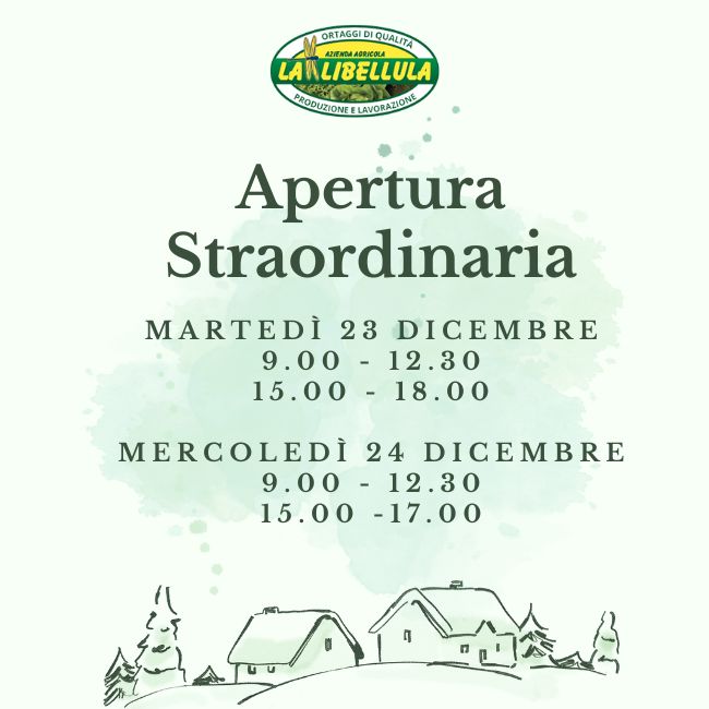 Martedì 23 e mercoledì 24 aperti mattina e pomeriggio...