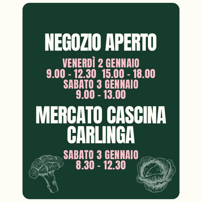 Venerdì 2 e sabato 3 gennaio negozio aperto